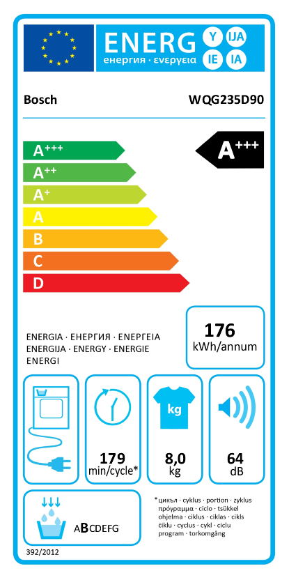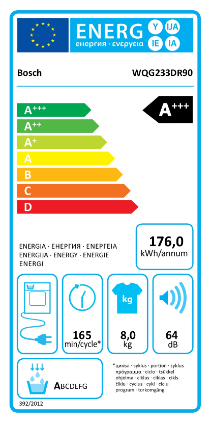 Ob es sich um einen Kondensationstrockner handelt, können Sie auch am Energielabel erkennen: Kondenstrockner sind durch eine Wasserschublade oben links im Gerätesymbol gekennzeichnet.